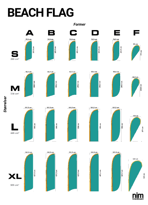 Hos NIM Brandboard tilbyder vi to hovedtyper: Beach Flag og Beach Flag HS. Begge systemer kombinerer stabil konstruktion med skarpt print og professionel finish.