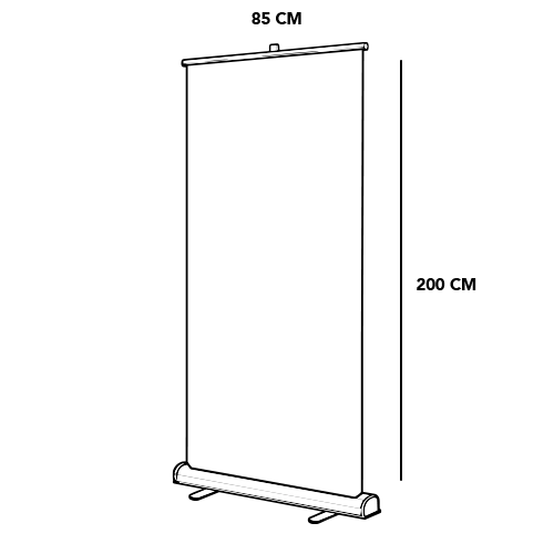 Robust enkeltsidet roll-up i sølveloxeret aluminium, designet til stabil og professionel præsentation.