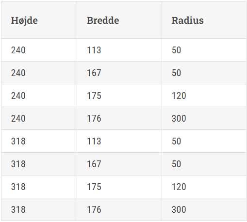 Expand GrandFabric Buet kan købes med tre forskellige radiusser, alt efter hvor meget du ønske den skal bue.